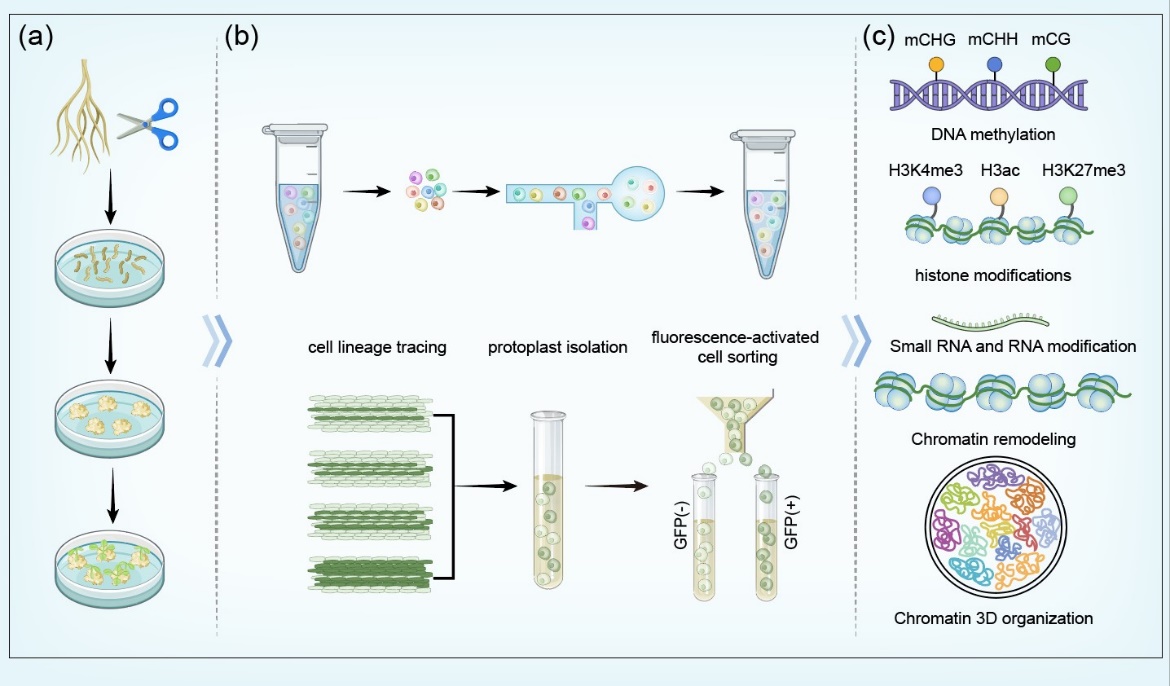 植物再生是植物应对机械损伤和环境胁迫的重要策略,也是现代农业生物技术中组织培养和遗传改良的基础。在该过程中,体细胞通过迅速的转录组重编程改变其细胞命运,进而获得全能性。表观遗传调控机制,包括DNA甲基化、组蛋白修饰和小RNA等,在此过程中发挥关键作用。随着技术的快速发展,研究人员解析植物再生分子机制的能力显著提升,多项研究已陆续揭示了多个物种在再生过程中转录组和表观组的动态变化。