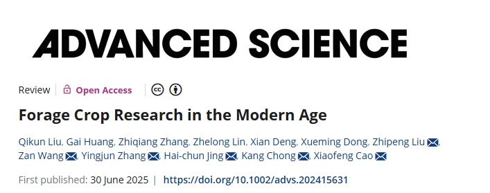 Qikun Liu, Gai Huang, Zhiqiang Zhang, Zhelong Lin, Xian Deng, Xueming Dong, Zhipeng Liu, Zan Wang, Yingjun Zhang, Hai-chun Jing, Kang Chong, Xiaofeng Cao. Forage Crop Research in the Modern Age. Advanced Science, 2025.