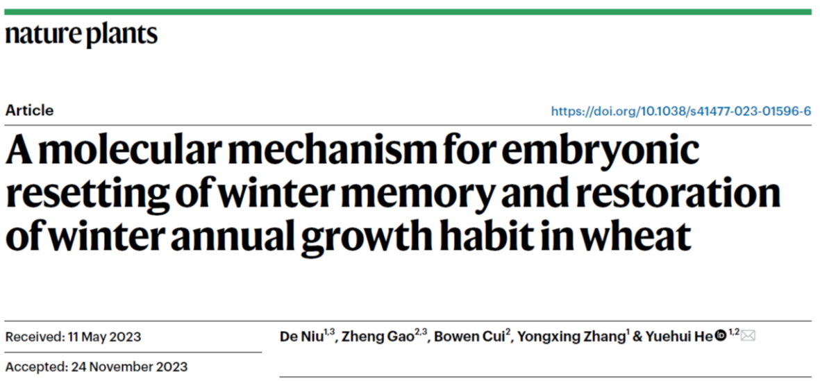 何跃辉团队揭示冬小麦“越冬记忆”重置与越冬习性在子代重建的分子机制2024-01-08 -