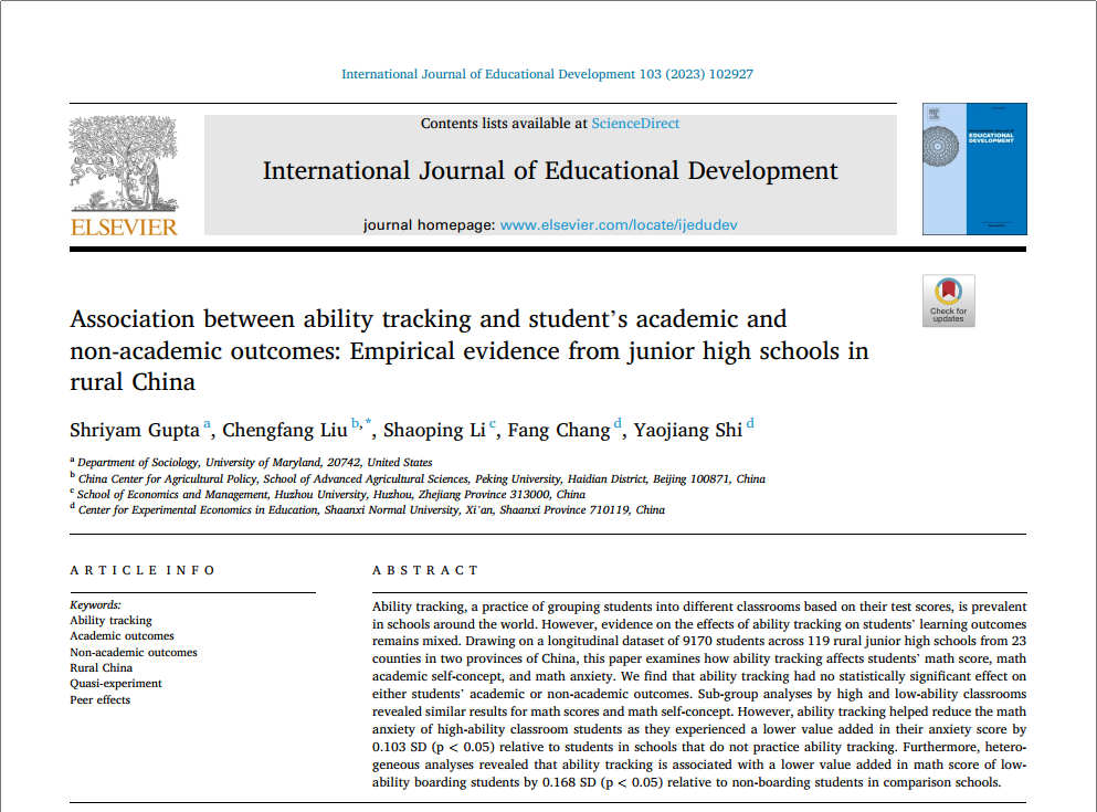 研究成果 | 刘承芳教授与合作者在APER发文2024-03-20 -