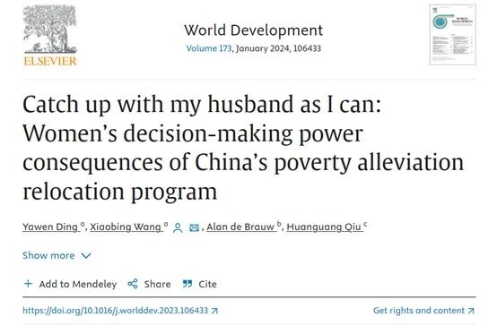 研究成果 | 王晓兵研究员团队在World Development上发文2023-10-25 -