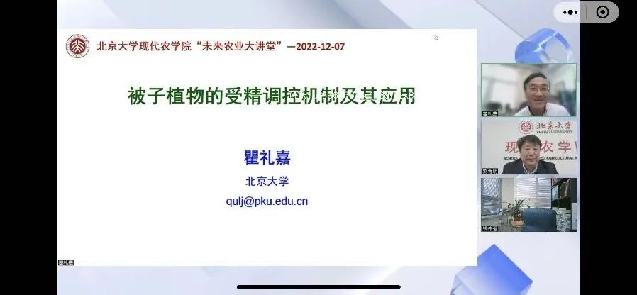 讲座回顾| 未来农业大讲堂——瞿礼嘉:植物雌雄互作调控受精的分子机理及其应用2022-12-12 -